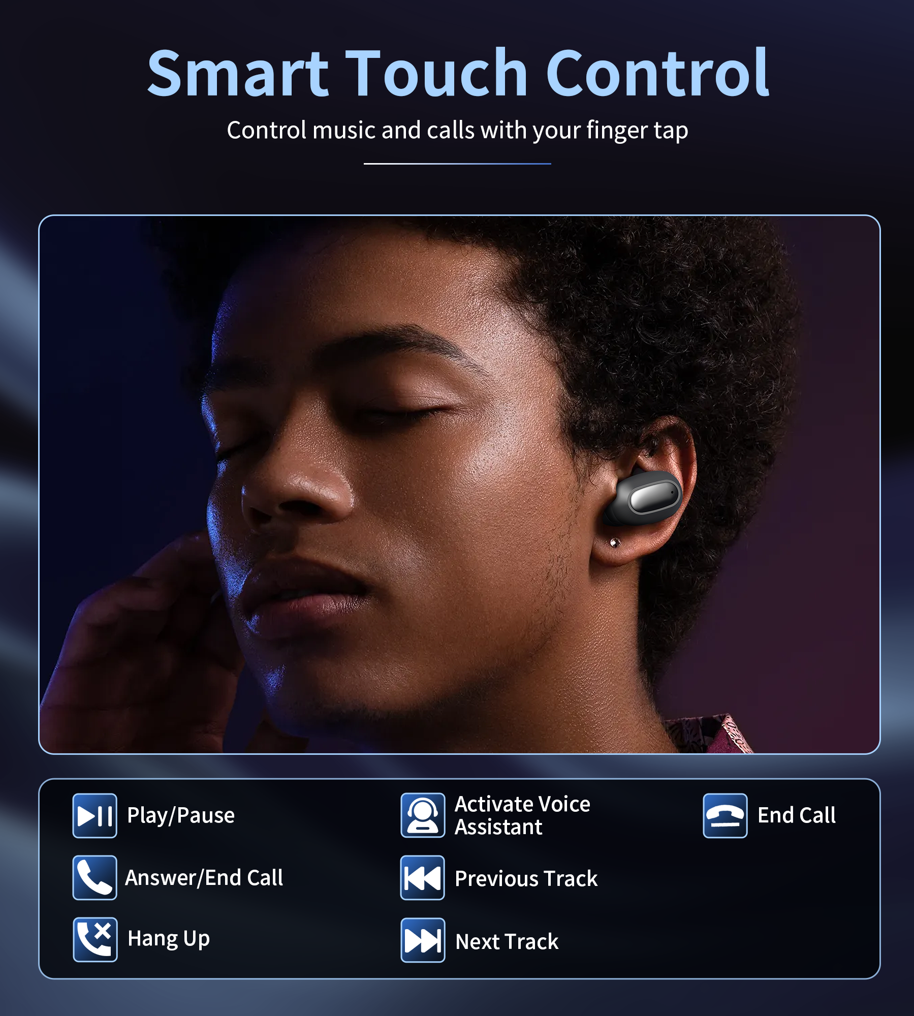 Use either earbud to control music, calls, activate voice assistant, etc.