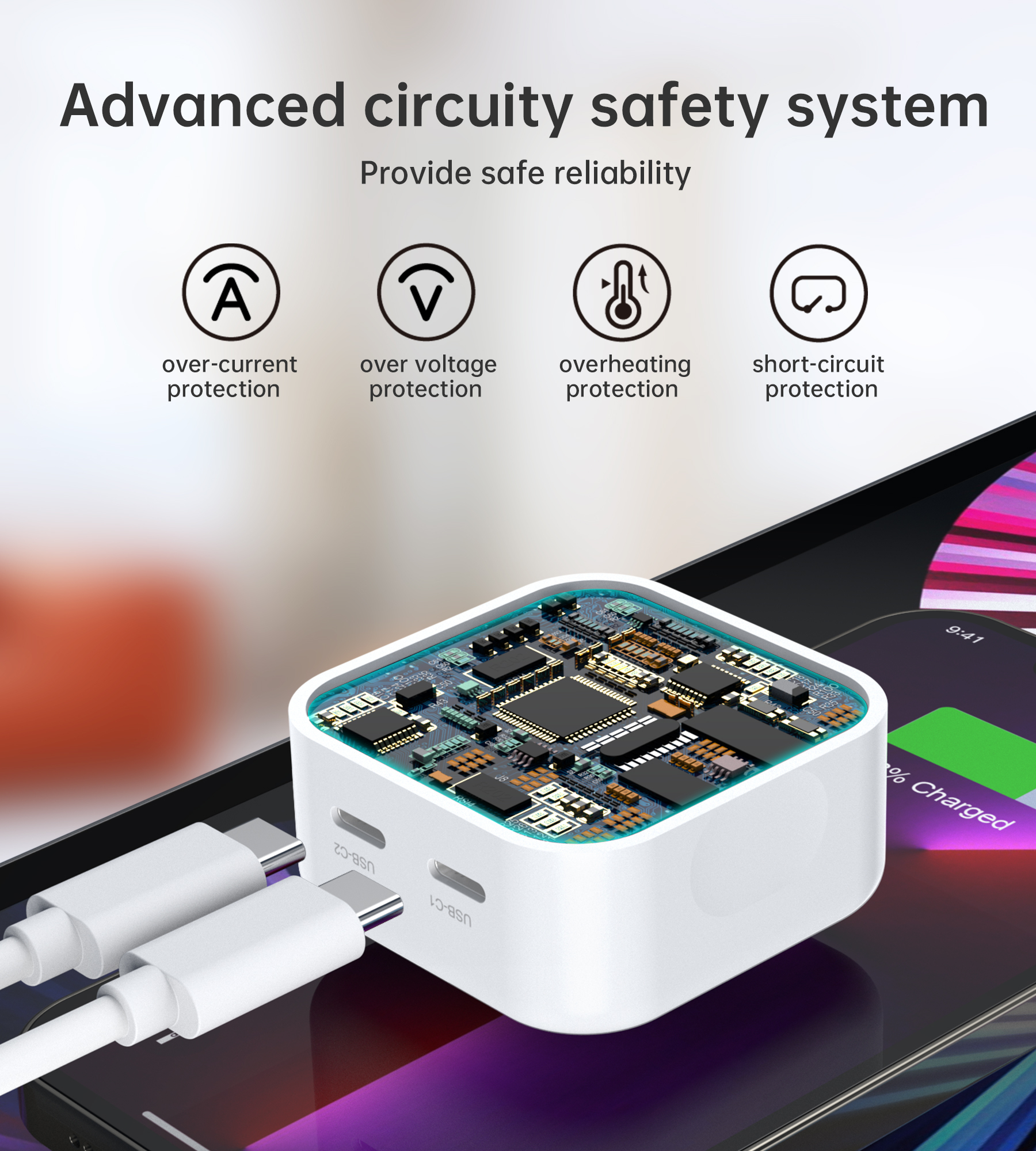 - Output current: - USB-C (C1/C2): 5V/3A, 9V/3A, 12V/2.92A, 15V/2.33A, 20V/1.75A (35W Max)