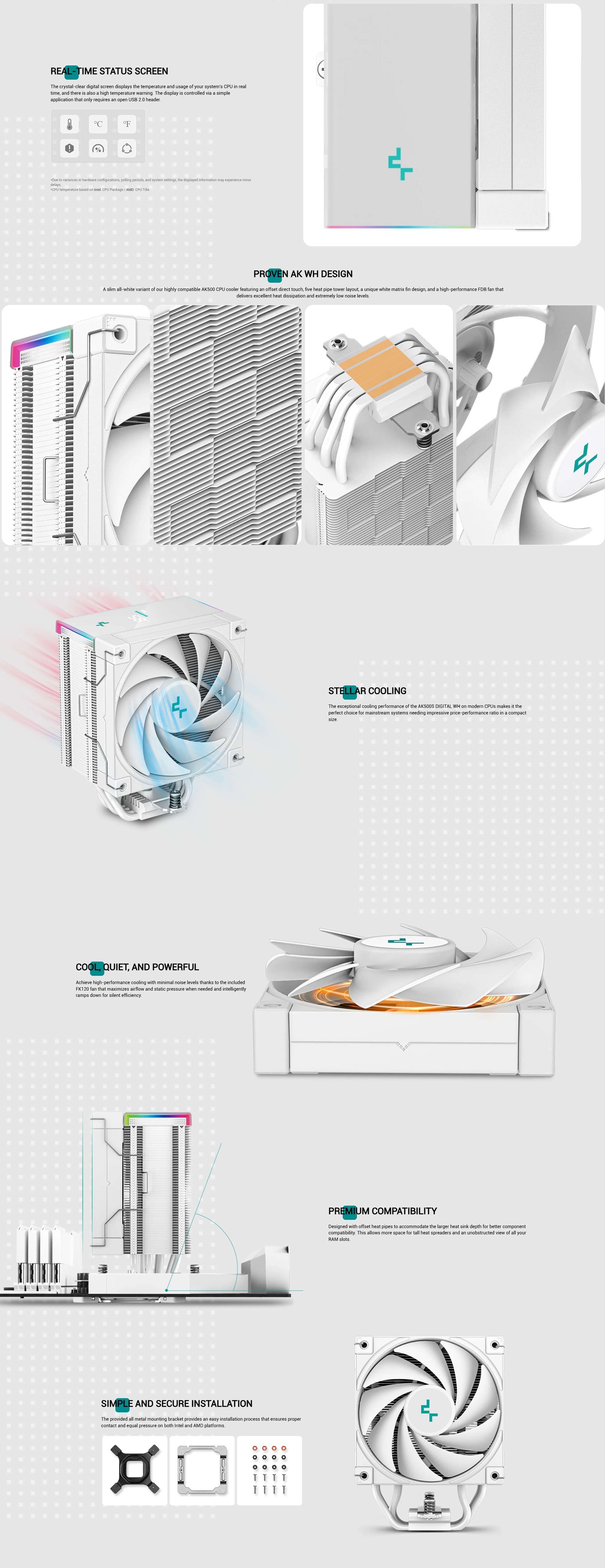 Deepcool AK500S Digital CPU Air Cooler White AK500S Digital White