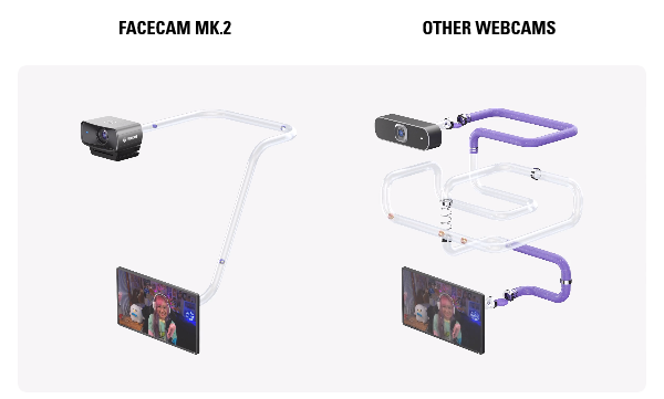 Low-latency streaming and a cleaner image, that’s what. Other webcams need extra processing, causing unnecessary lag and artifacts. Facecam doesn’t.