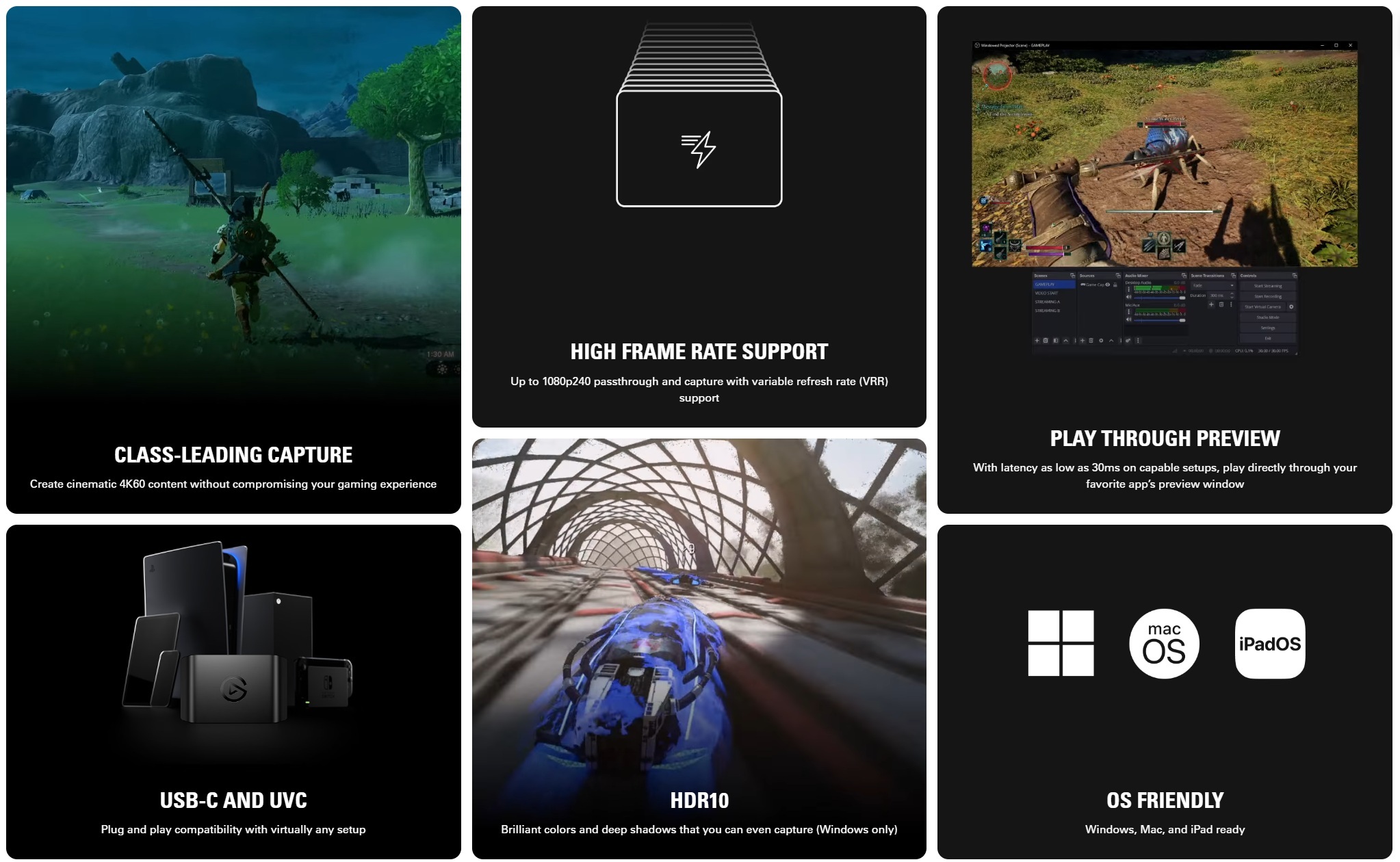 Pixel-perfect 4K60 or high frame rate capture, with zero latency passthrough. Stream and record fast and clean on almost any system you throw at 4K S.