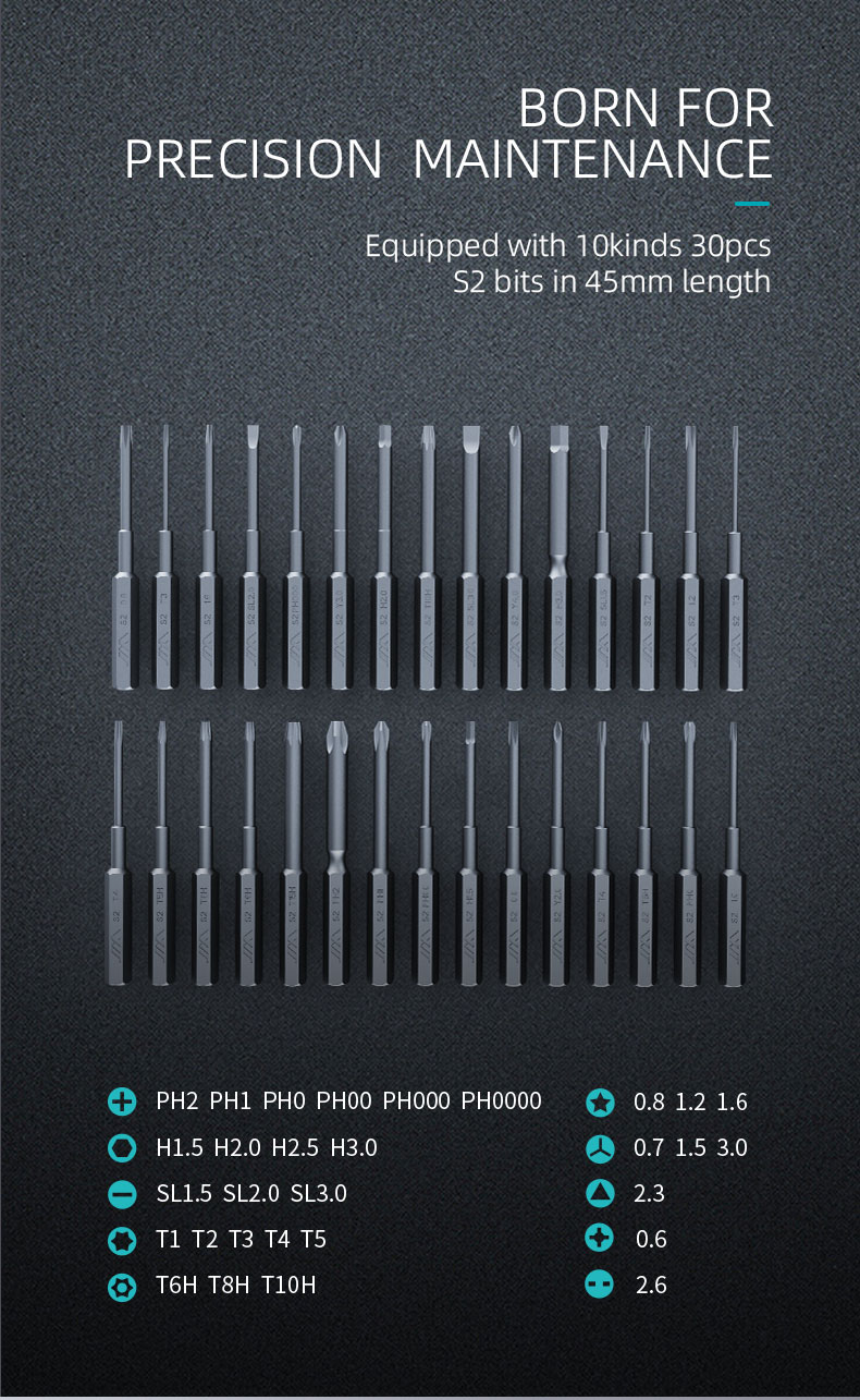 In the box you will also find a set of 30 bit with so much variety, you'll be able to do almost any job with it! What's more, they have been placed so that you can easily pull them out. Enjoy perfect order and pleasant work with Jimi Home!