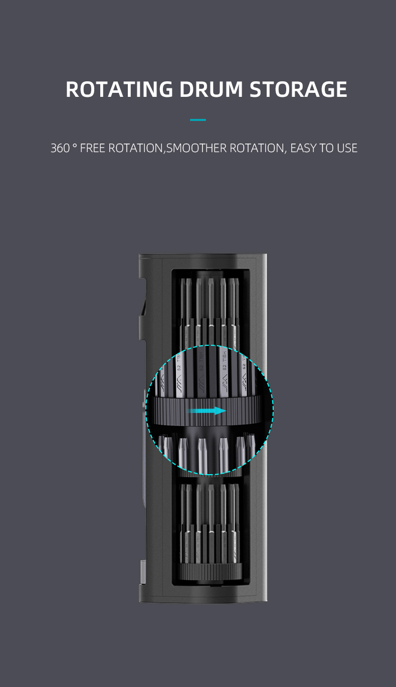 Now you will be able to have a set of screwdrivers always at hand! All the elements have been placed in a practical case that rotates 360°. The case was made of durable and corrosion-resistant material. What's more, it has been additionally coated with anodes, which prevents accidental slipping from a sweaty hand.