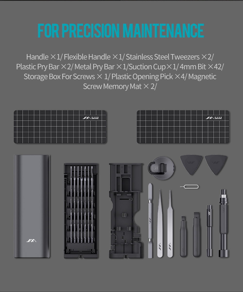 JIMI HOME JM-GNT60 screwdriver set is a versatile set for everyone! The set includes 42 screwdrivers, which were created from high-quality S2 steel. The product also offers many other items, i.e. tweezers, a card key or an undermining tool, which will help during the work. All the parts have been placed in a practical case, which will facilitate transportation.