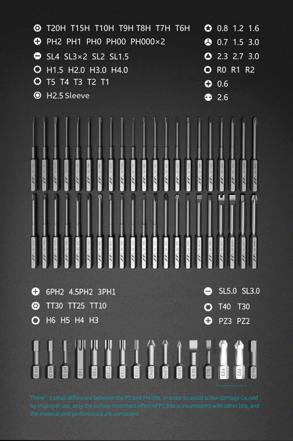 The case is made of high-quality material that is durable and resistant to wear and tear. Moreover, the rounded edges of the case allow for a comfortable grip. The handles are made of durable aluminum alloy, while each bit was created from a special S2 steel alloy. All the materials used guarantee both comfortable and safe use.