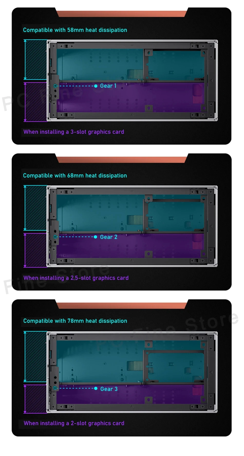 - ITX motherboard has 3 levels of mobile and flexible hardware installation, with effective matching of graphics card thickness and heat sink height