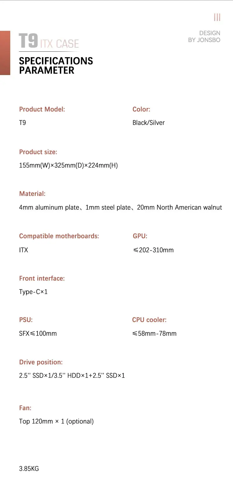 Jonsbo T9 Full Aluminum Alloy SFF Mini-ITX Case Silver