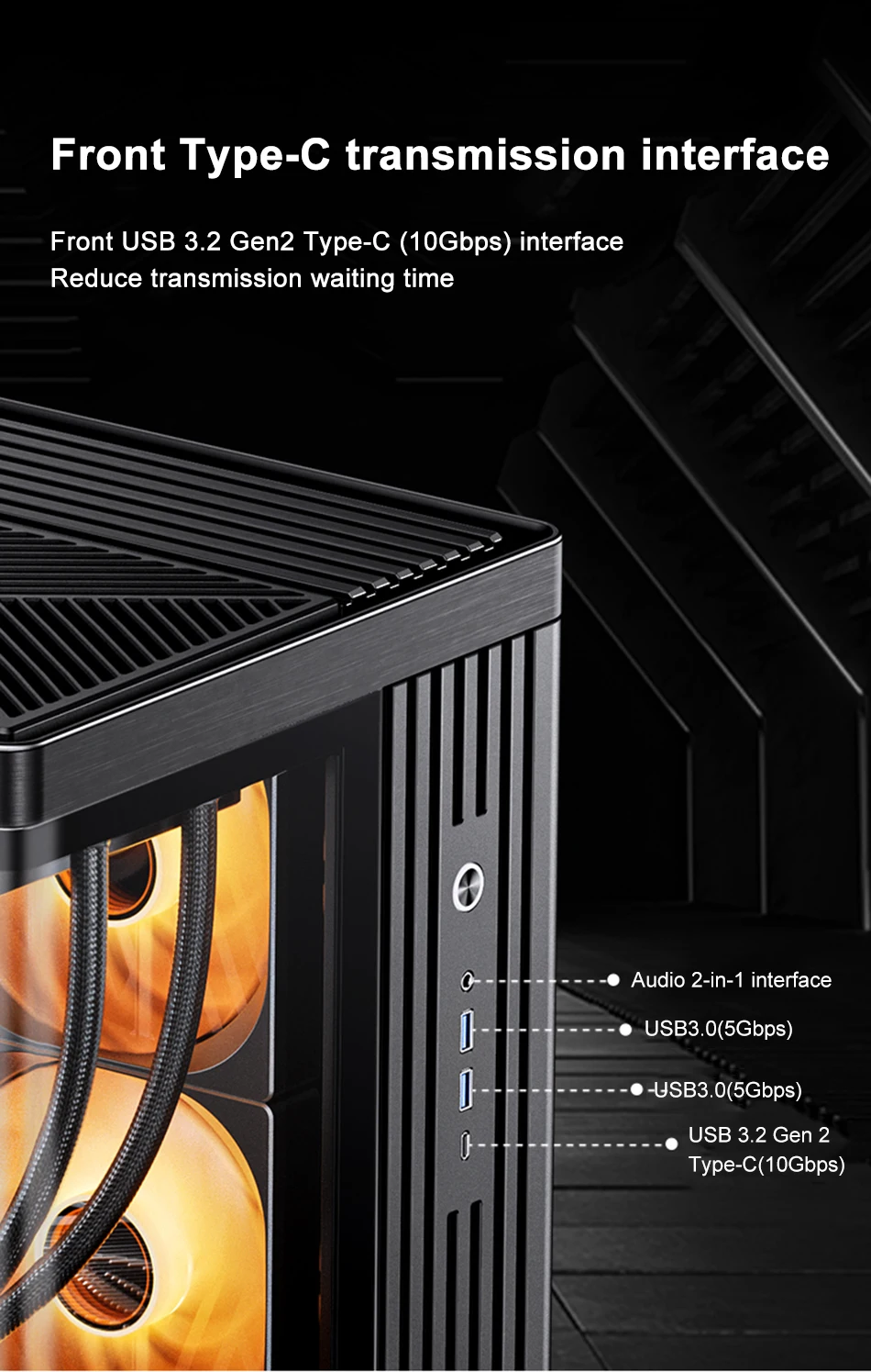 Front interface: USB 3.2 Gen2 Type-C * 1/USB 3.0 * 1/AUDIO * 1+MIC * 1 (2-in-1)