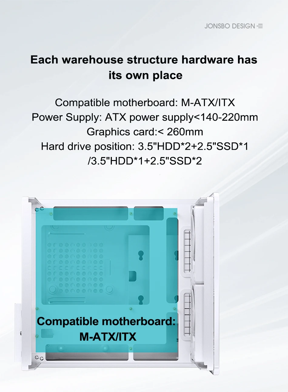 Jonsbo V12 Hyperbolic Glass MATX Micro Tower Case White
