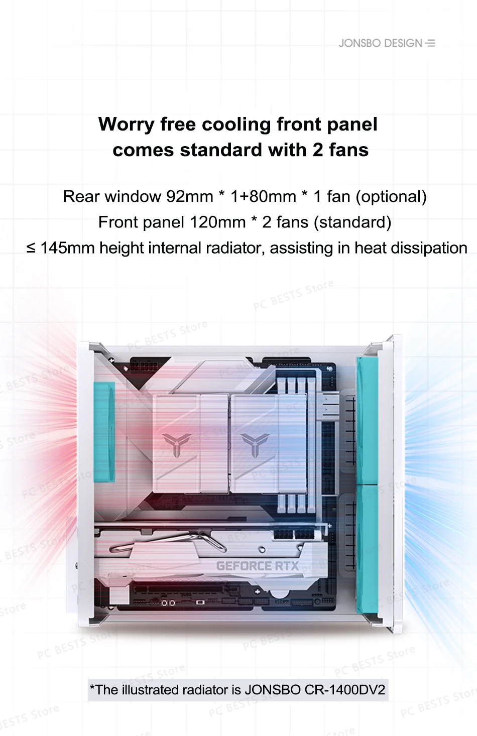 Fan: Rear window 92mm * 1+80mm * 1 fan (optional) Front panel 120mm * 2 (standard)