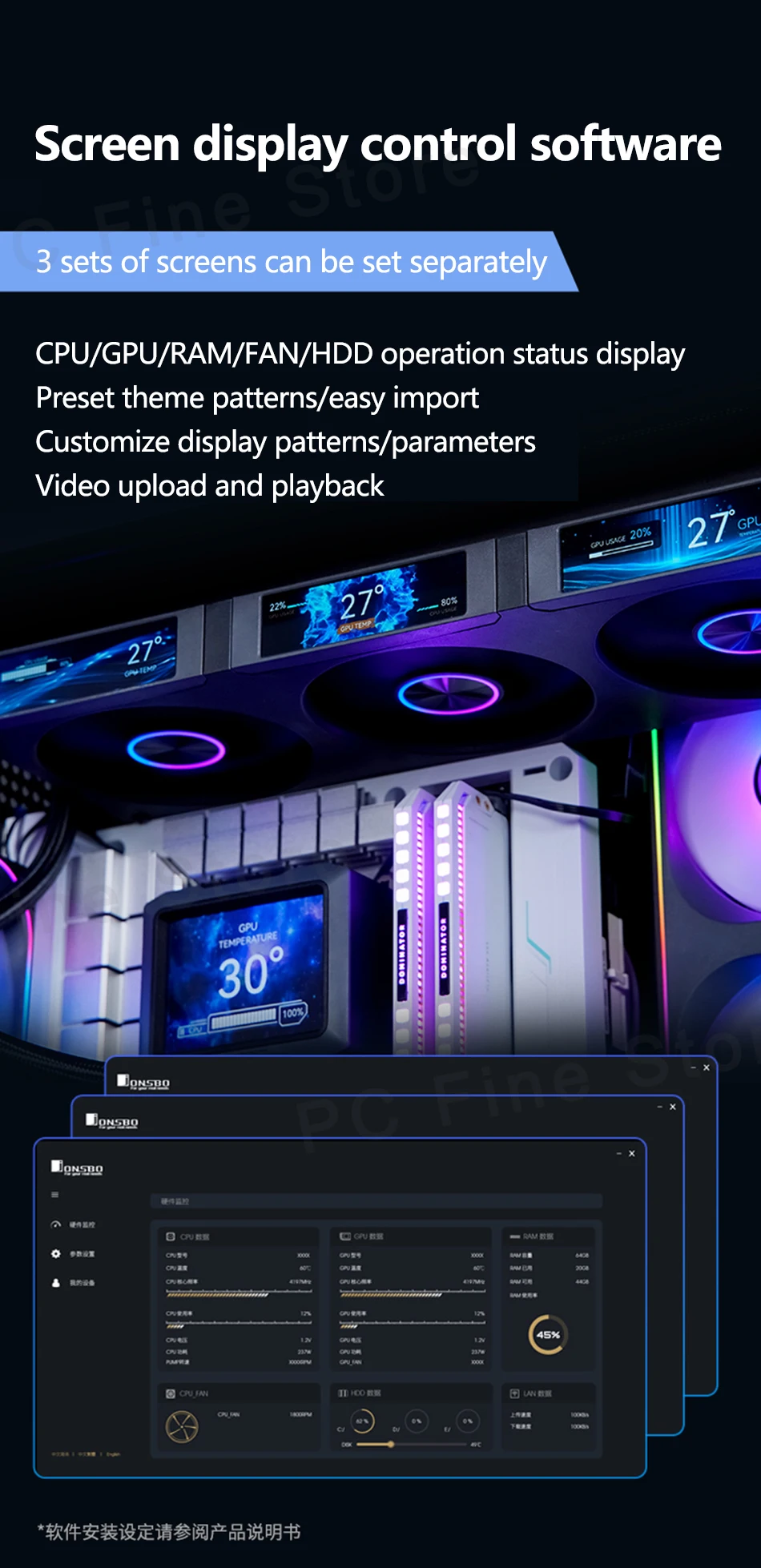 Jonsbo ZC-360B ARGB 360mm Case Fan Black with Screen Display