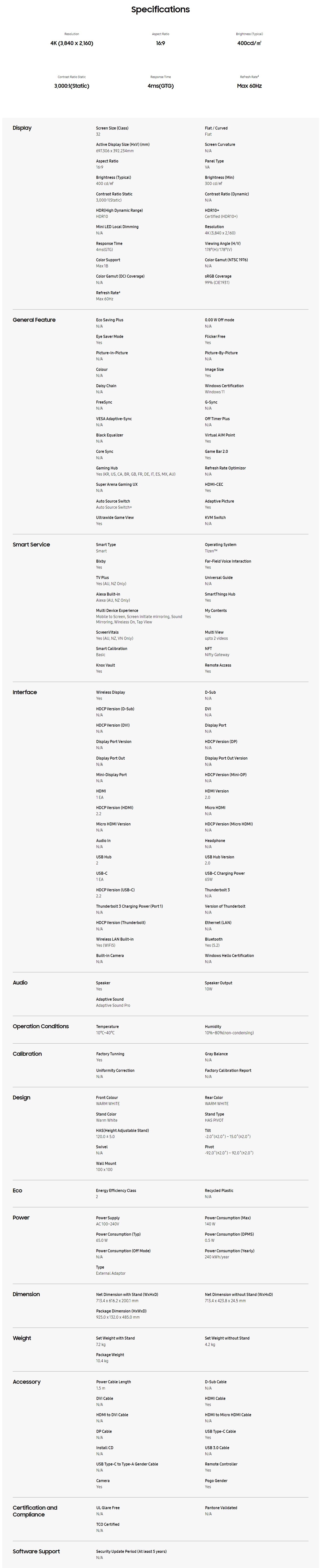 The Smart Monitor combines sleek, cutting-edge design with ergonomic features, offering a slim and stylish look without compromising on comfort. Its height-adjustable stand, which also tilts and pivots, ensures the optimal viewing angle for maximum comfort.