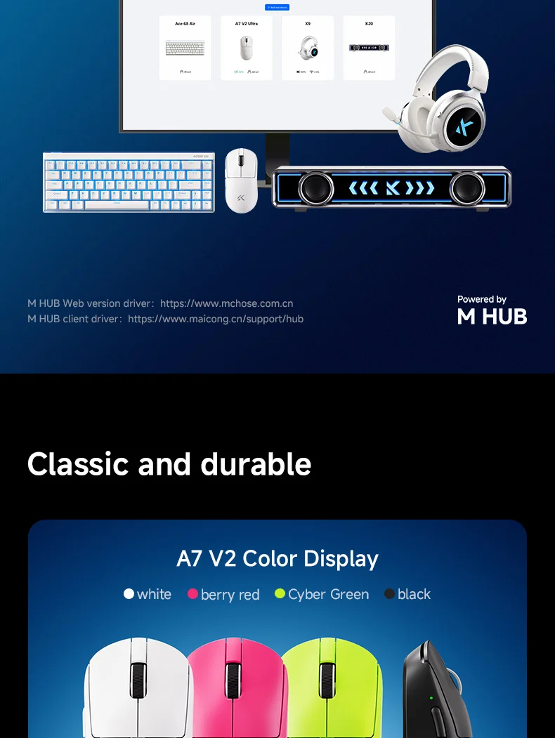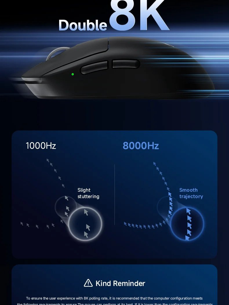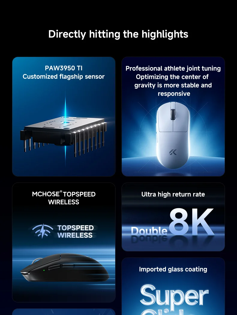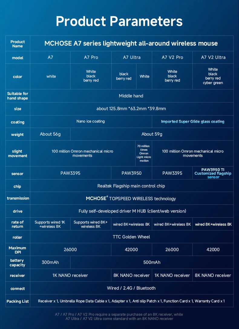 MCHOSE A7 V2 Ultra Dual 8K Wireless Gaming Mouse Black MC-A7V2-5