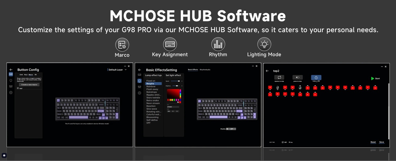 Illuminate your setup with vibrant RGB lighting featuring 16.8 million colors and various lighting modes. Adjust colors and brightness to your liking with the MCHOSE HUB, and create a stunning, dynamic desktop experience.