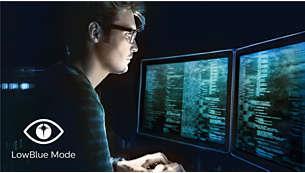 Studies have shown that just as ultra-violet rays can cause eye damage, shortwave length blue light rays from LED displays can cause eye damage and affect vision over time. Developed for wellbeing, Philips LowBlue Mode setting uses a smart software technology to reduce harmful shortwave blue light.