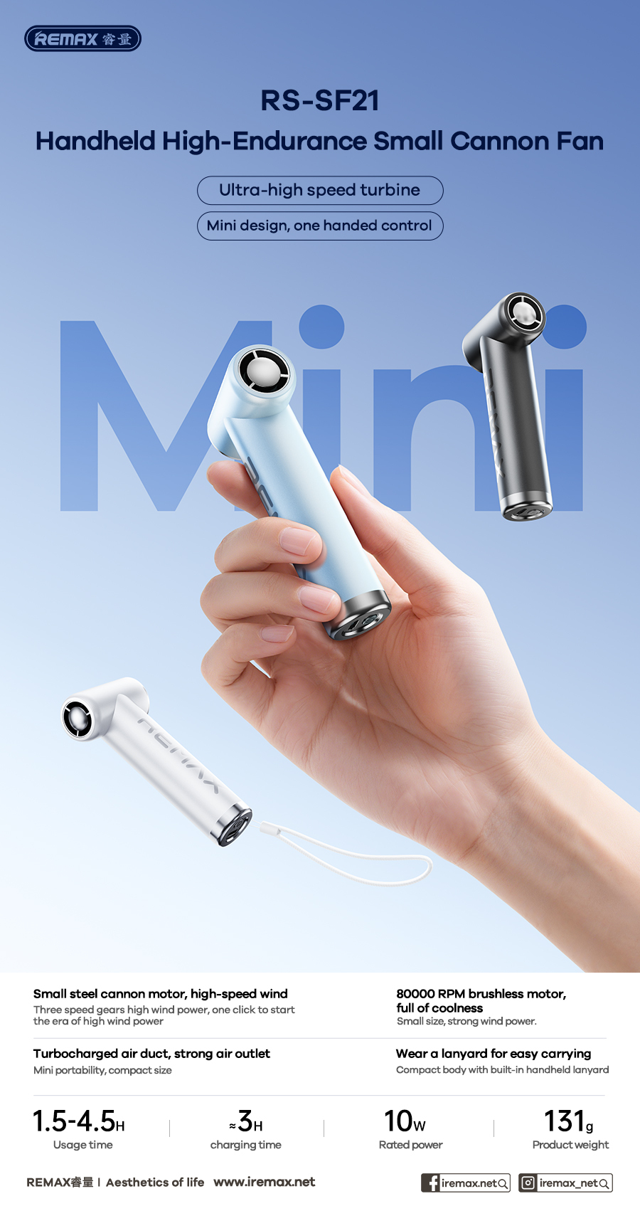 REMAX Handheld High-Endurance Small Cannon Fan Black