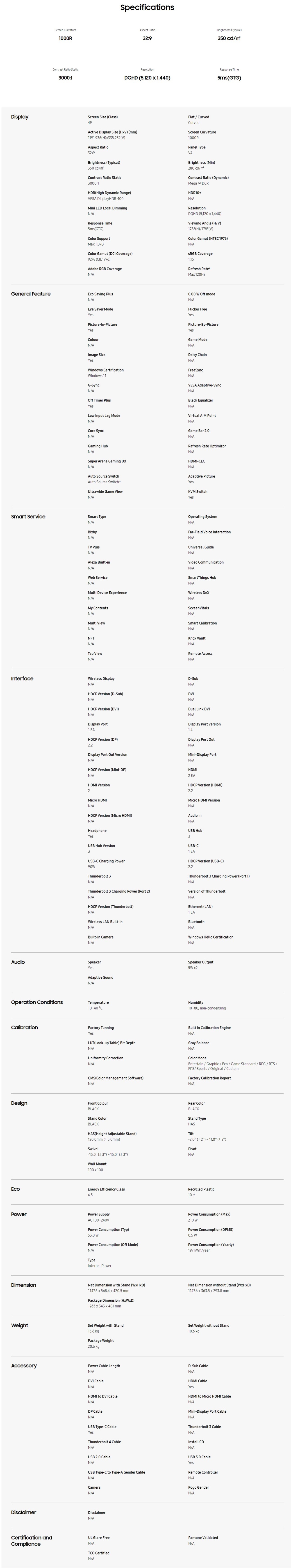 Immerse yourself in enhanced productivity for all your projects. A 49" 1000R curved display wraps around you in 32:9 aspect ratio, closely matching your field of view. You can see and do more with a wider screen in Dual QHD, for more productivity with more comfort.