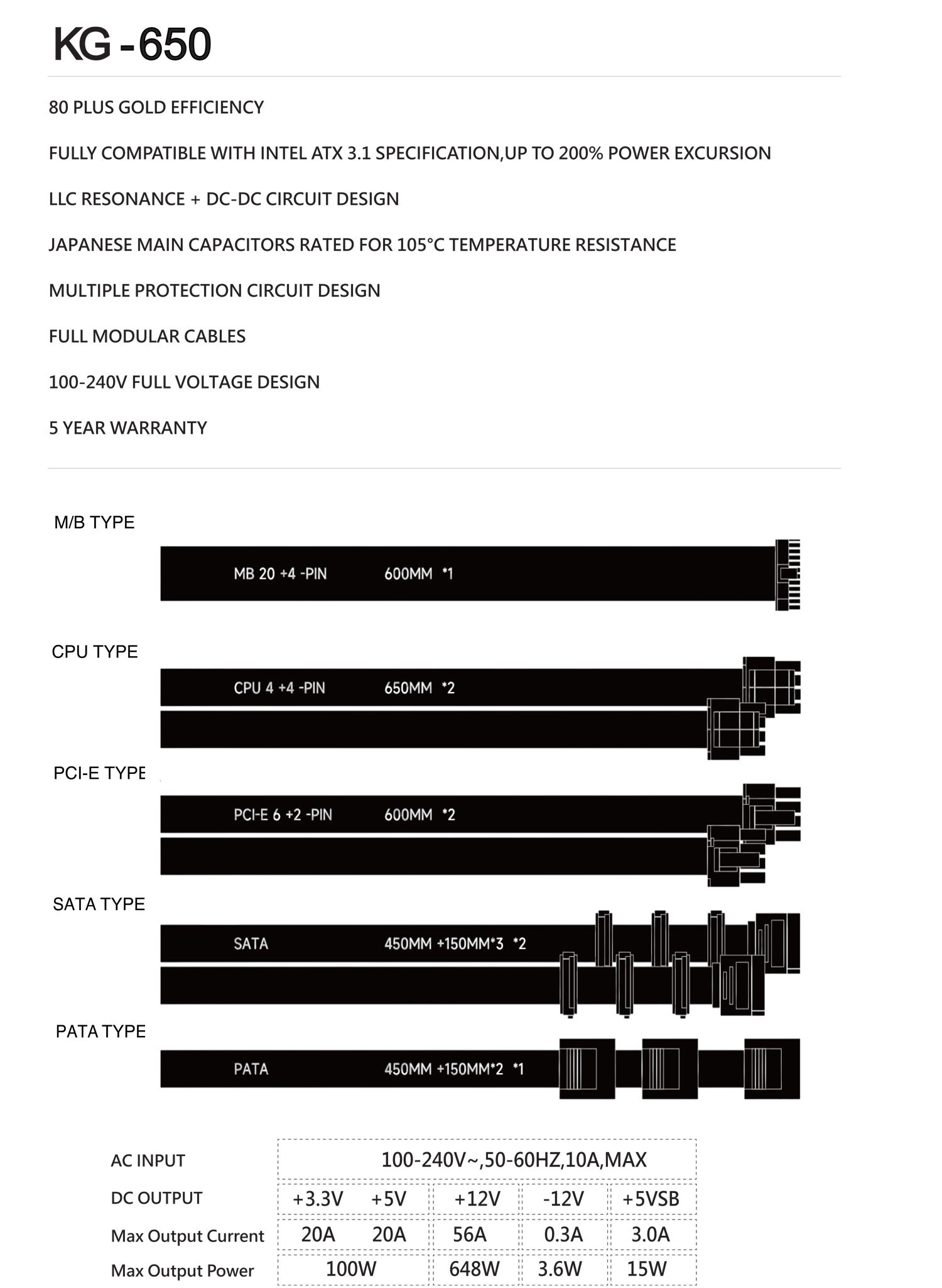 Thermalright TR-KG650 650W ATX3.1 Gold Fully Modular PSU