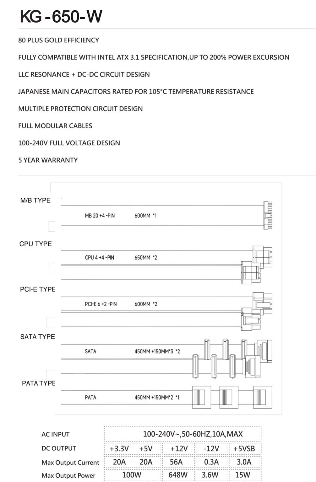 Thermalright TR-KG650W 650W ATX3.1 Gold Fully Modular PSU White